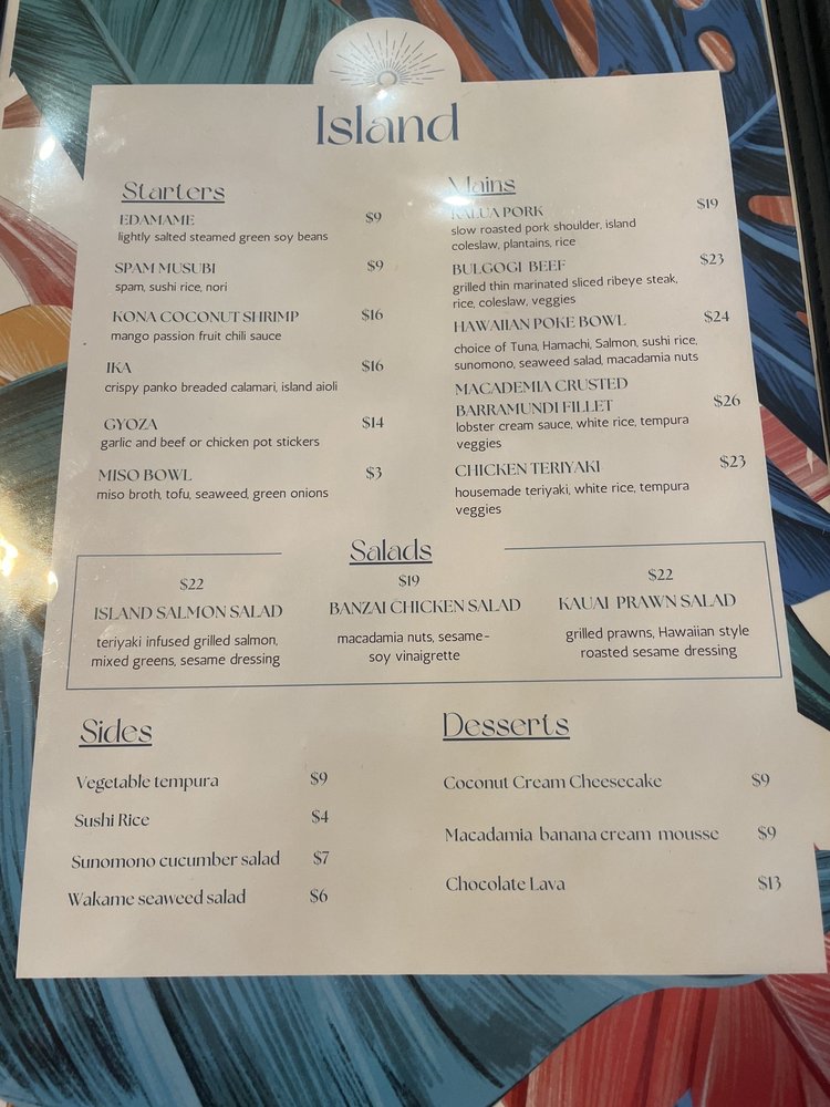 Tempura vegetables, island rice, napa pineapple coleslaw, citrus ponzu.