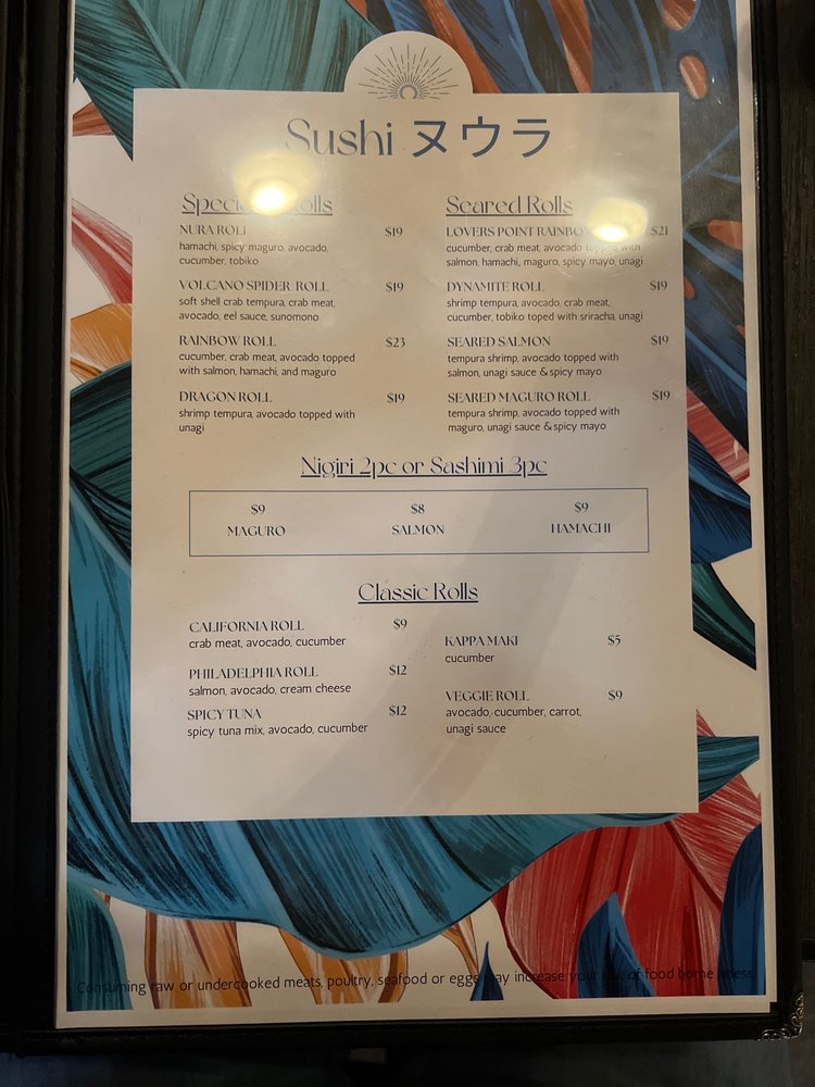 Nura Sushi & Island Grill, located in Pacific Grove, CA, offers a wide range of sushi and seafood dishes, with options for both dine-in and takeout. The menu includes fresh and generously filled rolls like the lighthouse roll, volcano spider, and Ohio roll, all praised for their quality and size. Customers have raved about the excellent service, friendly staff, and peaceful ambiance, making it a top choice for a casual dinner or special occasion. The premium sashimi platter and beef udon have been highlighted as must-try dishes. With positive reviews from satisfied customers, Nura Sushi & Island Grill stands out for its attention to detail in both taste and presentation. Whether you're a sushi enthusiast or looking for a delicious meal, this veteran-owned establishment promises a memorable dining experience.